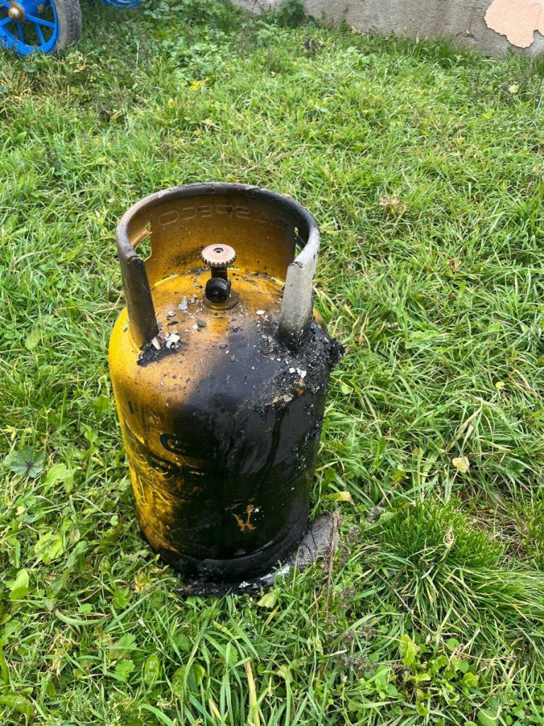 Potrivit informațiilor preliminare, incendiul ar fi izbucnit în momentul în care s-a încercat aprinderea focului la butelie. Forțele de intervenție au acționat cu două autospeciale de stingere și o ambulanță SMURD, iar incendiul a fost lichidat în scurt timp, în limitele în care a fost găsit.