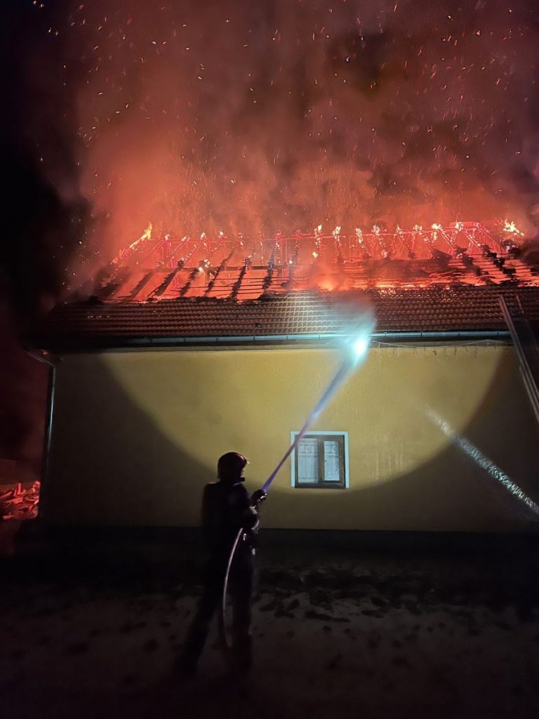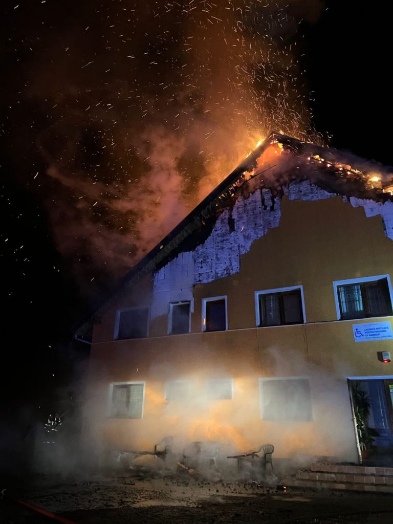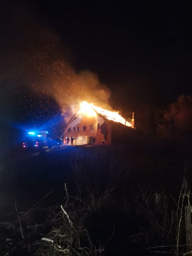 Incendiul se manifestă violent pe o suprafață de aproximativ 150 mp. Din fericire, până la sosirea pompierilor militari, toate cele patru persoane aflate în locuință au fost evacuate în siguranță.