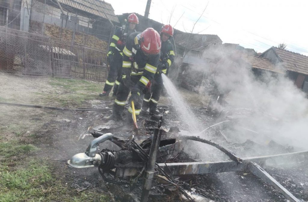 Incendiul a fost lichidat rapid de către pompieri, însă rulota a ars în totalitate.