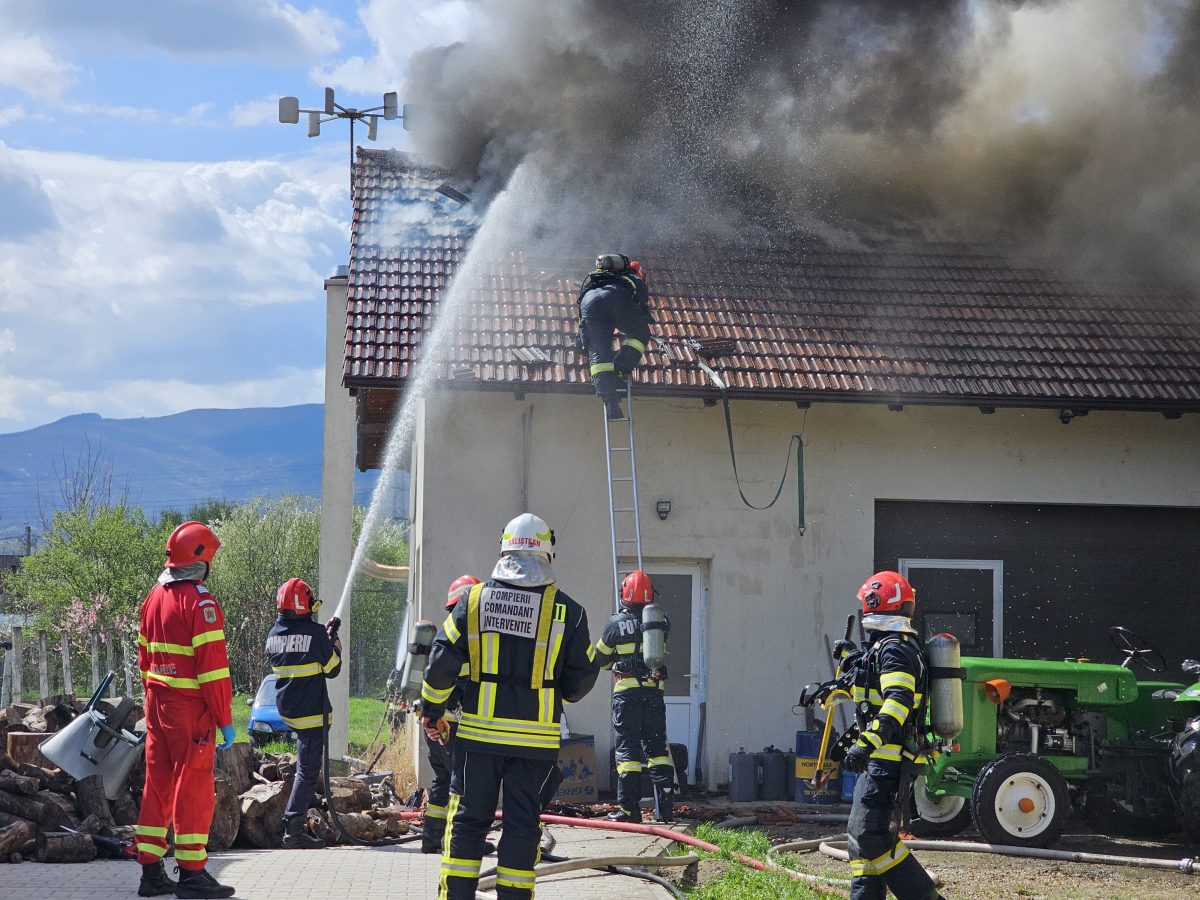 Forțele de intervenție au ajuns prompt la locul incidentului și acționează pentru localizarea și lichidarea incendiului, prevenind extinderea acestuia la clădirile învecinate.