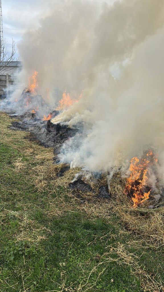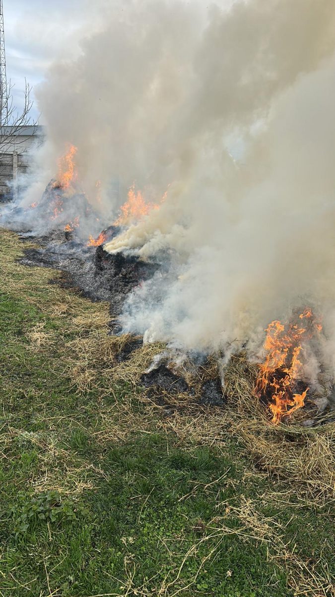 Flăcările au cuprins 10 baloți de fân, existând riscul ca focul să ajungă la un rezervor de biogaz.