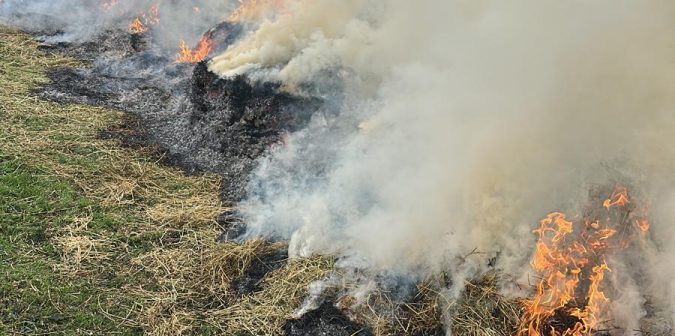 Intervenție pentru stingerea unui incendiu care a cuprins mai mulți baloți în municipiul Câmpia Turzii