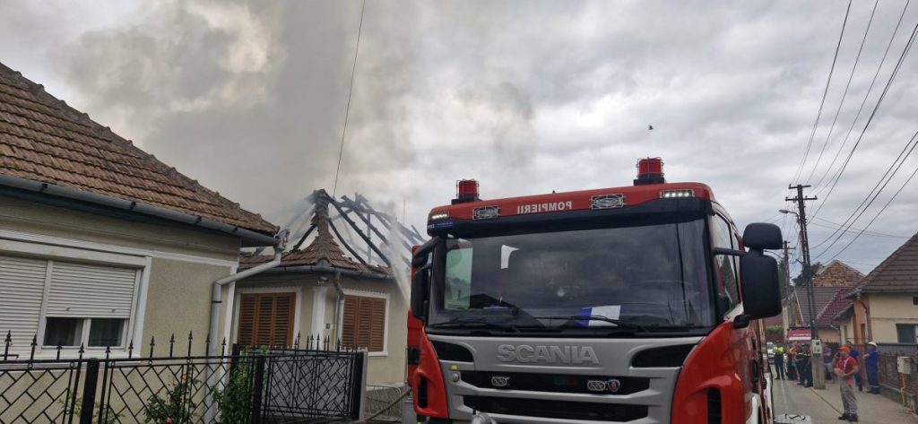 Incendiu puternic, la acoperișul unei locuințe din Blaj. Intervenție rapidă a pompierilor