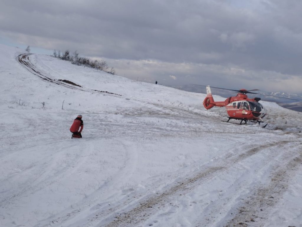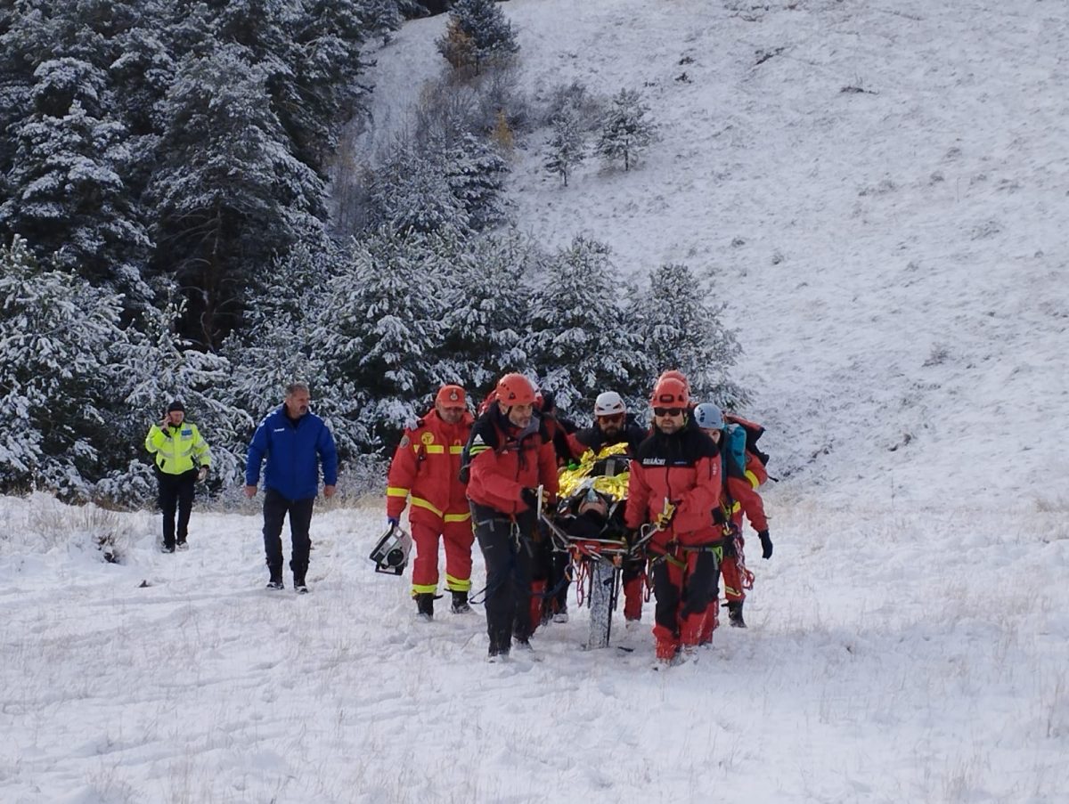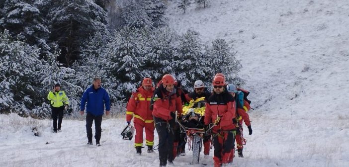 Elicopterul SMURD a aterizat și vă prelua persoana rezultată din accidentul montan, urmând a fi transportată la spital.