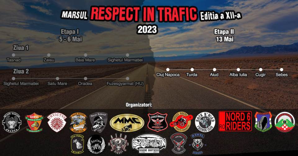 Pe raza de desfășurare a etapei II, evenimentul „Respect în Trafic” va fi realizat cu sprijinul Inspectoratului de Poliție Județean Cluj/Alba, Inspectoratului de Jandarmi Județean Cluj/Alba și nu în ultimul rând primăriilor din orașele Cluj-Napoca, Turda, Alba Iulia, Aiud, Sebeș și Cugir”, au transmis organizatorii evenimentului.
