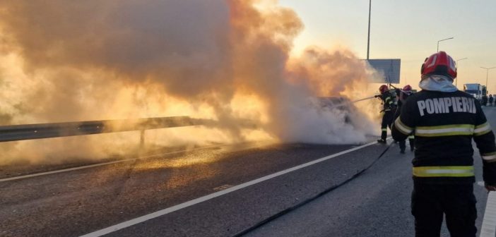 Mașină mistuită de flăcări pe DEx16 în Oradea – șoferul a scăpat ca prin minune!