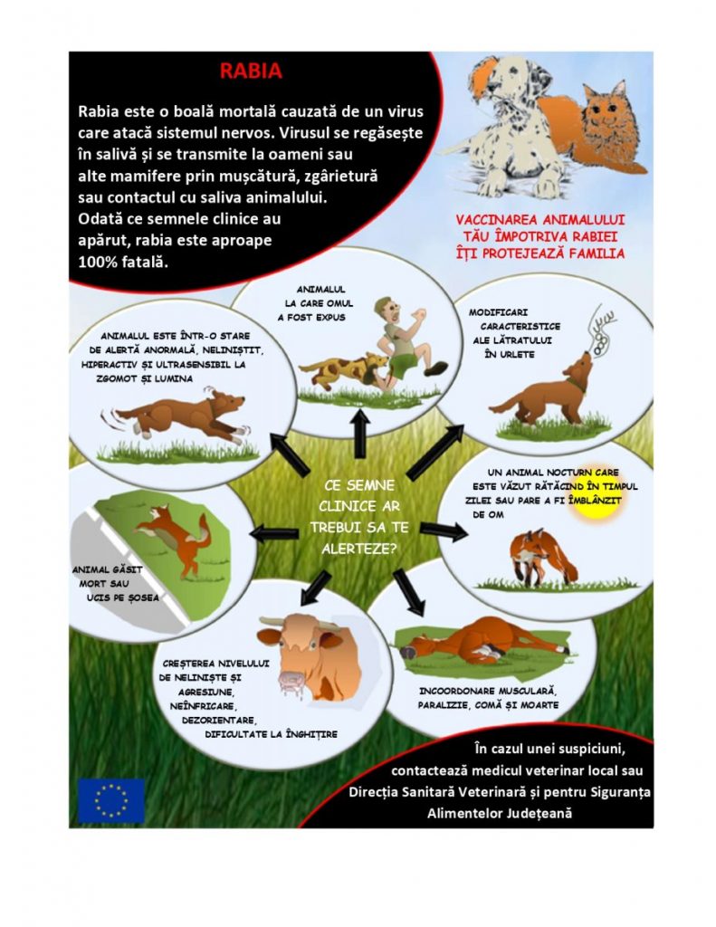 Nu uita că vaccinarea animalelor de companie împotriva rabiei este cea mai eficientă metodă de prevenire a acestei boli mortale. Protejează-ți familia și comunitatea ta prin luarea măsurilor necesare și fiind vigilent în privința semnelor de rabie la animalele din jurul tău.