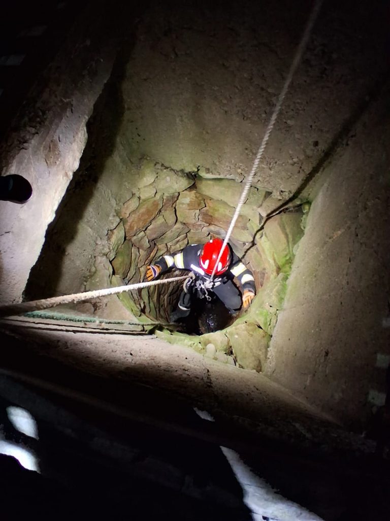 Pentru gestionarea situației semnalate de apelantul numărului unic 112, a fost mobilizat un echipaj de pompieri din cadrul Stației Aleșd, care, ajuns la fața locului, a constatat că animalul se afla într-o fântână adâncă de 7 metri, nivelul apei fiind de cca 0.5 m.