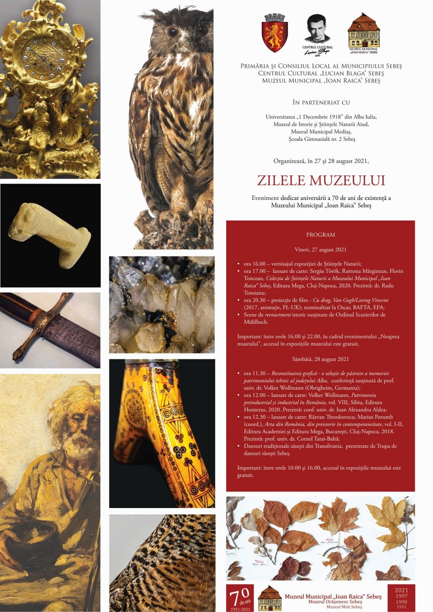 • ora 17.00 – lansare de carte: Sergiu Török, Ramona Mărginean, Florin Toncean, „Colecţia de Știinţele Naturii a Muzeului Municipal „Ioan Raica” Sebeș”, Editura Mega, Cluj-Napoca, 2020. Prezintă dr. Radu Totoianu;