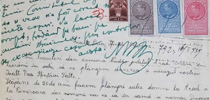 De 20 de ani facem plângeri către domni la Arad şi Timişoara, dar nimeni nu ne ia în seamă şi numai Dumnezeu ne ştie cum trăim. Înainte de bătaie (primul război mondial – n.n.) noi am avut pământul la un loc cu un bogătaş jâdan Iosif Gros. Când o fost să fie şi comuna noastră împroprietărită ne-or înceluit şi or făcut numai despărţârea pământului nost comunal de către cel domnesc.