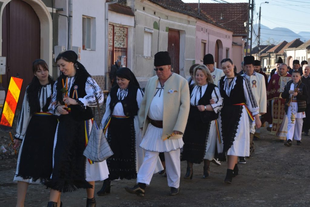 Păștenii îmbrăcați în straie populare tradiționale, s – au adunat joi dimineață, la ora 08.30, în curtea Bisericii Ortodoxe, Sf. Nicolae” din localitate, unde apoi au participat la Liturghia Sfântului Vasile cel Mare, oficiată de un sobor format din preoții parohi, Andrei Dănilă și Mihai Gălățeanu.