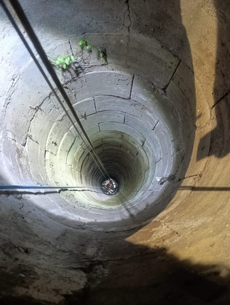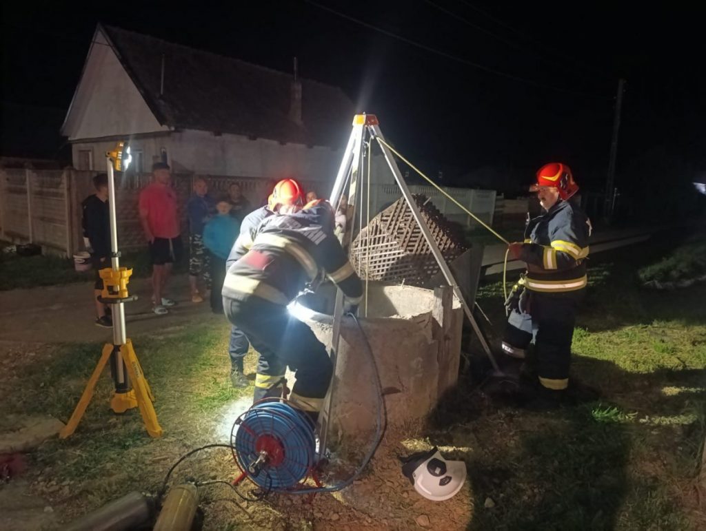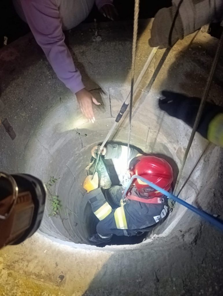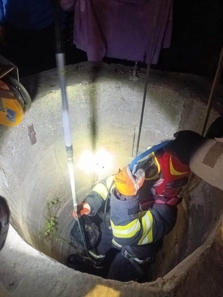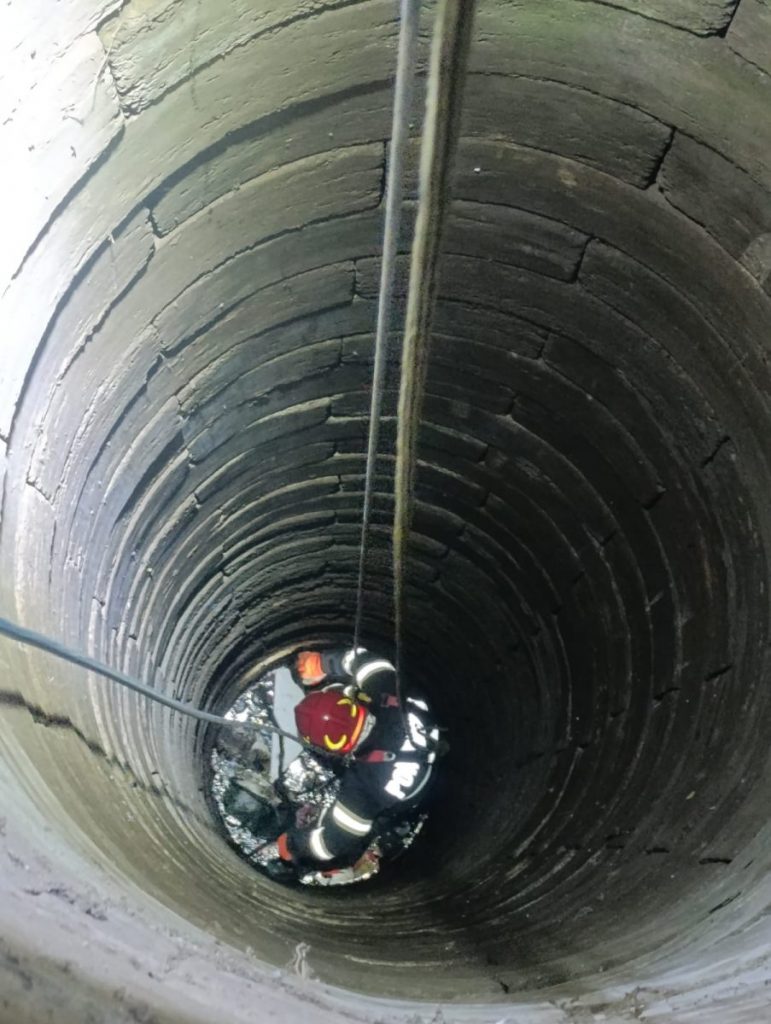 Ajunși la fața locului, salvatorii au constatat că cele două animale se aflau pe o bucată de polistiren care plutea într-un puț cu o adâncime totală de peste 20 de metri.