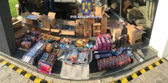 În urma perchezițiilor, oamenii legii, au confiscat peste 500 kilograme de materiale pirotehnice, iar un bărbat din județul Timiș, a fost reținut.