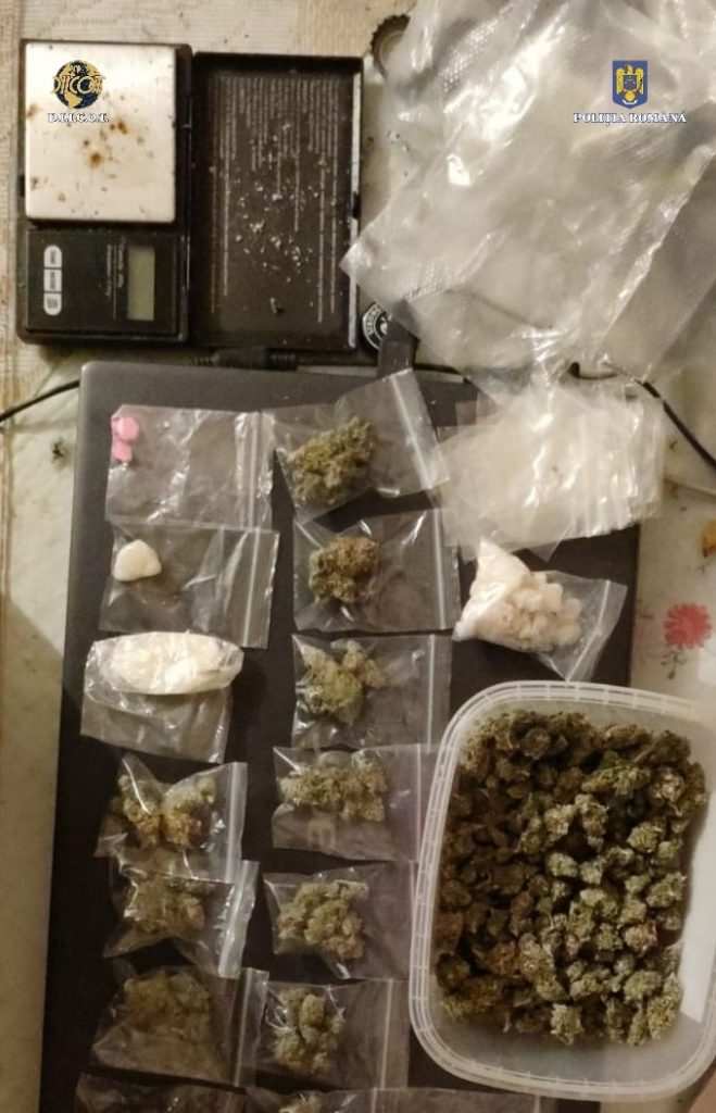 În urma percheziției efectuate la domiciliul acesteia, au fost descoperite și ridicate mai multe pungi conținând aproximativ 15 grame de substanță cristalină, recipiente și pungi conținând aproximativ 60 de grame substanță vegetală de culoare verde-oliv, un cântar de precizie, precum și alte mijloace de probă.