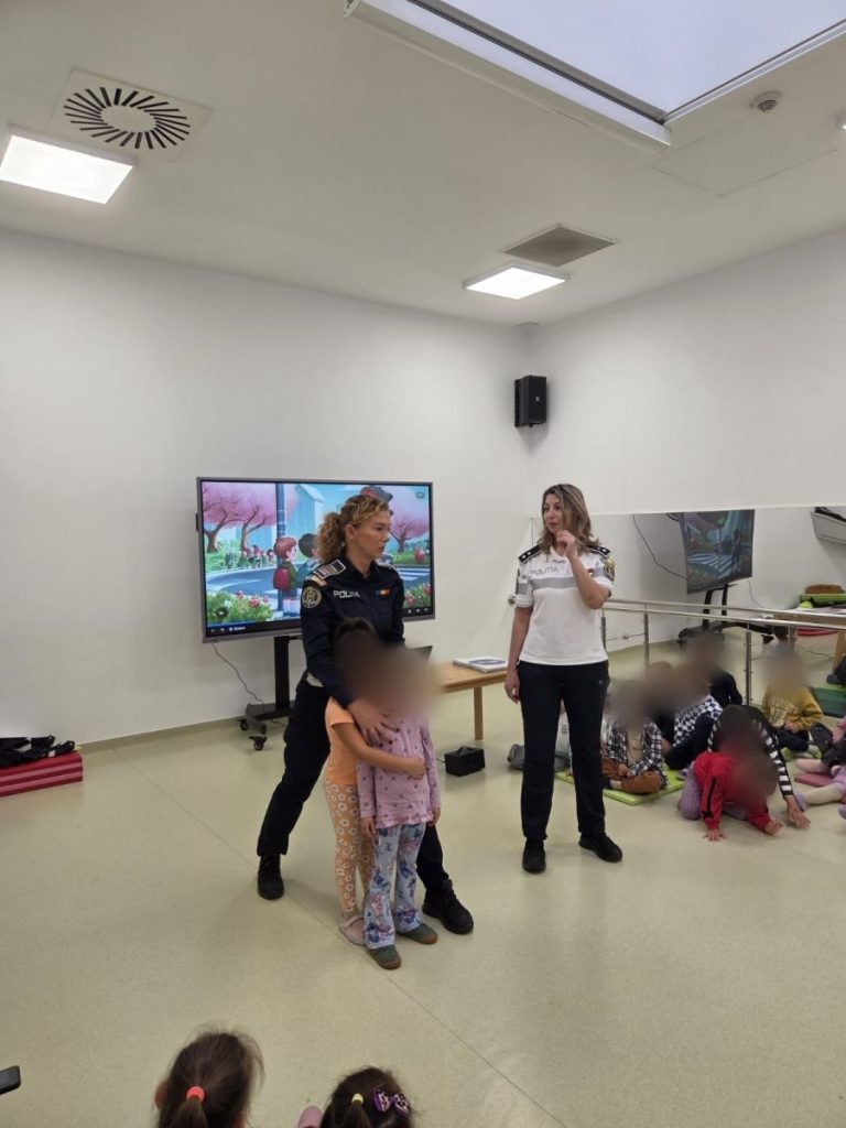 Pe parcursul activității, polițiștii au discutat cu cei mici despre modul corect de traversare a străzii și semnificația culorilor semaforului, vârsta recomandată pentru deplasarea pe bicicletă și importanța purtării căștii de protecție, regulile de comportament în autoturism, cu accent pe utilizarea centurii de siguranță și măsurile de siguranță atunci când circulăm cu mijloacele de transport în comun.