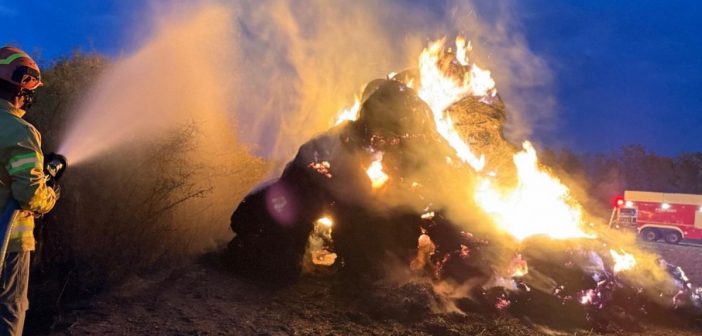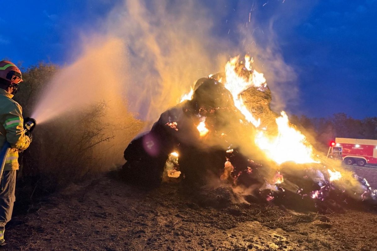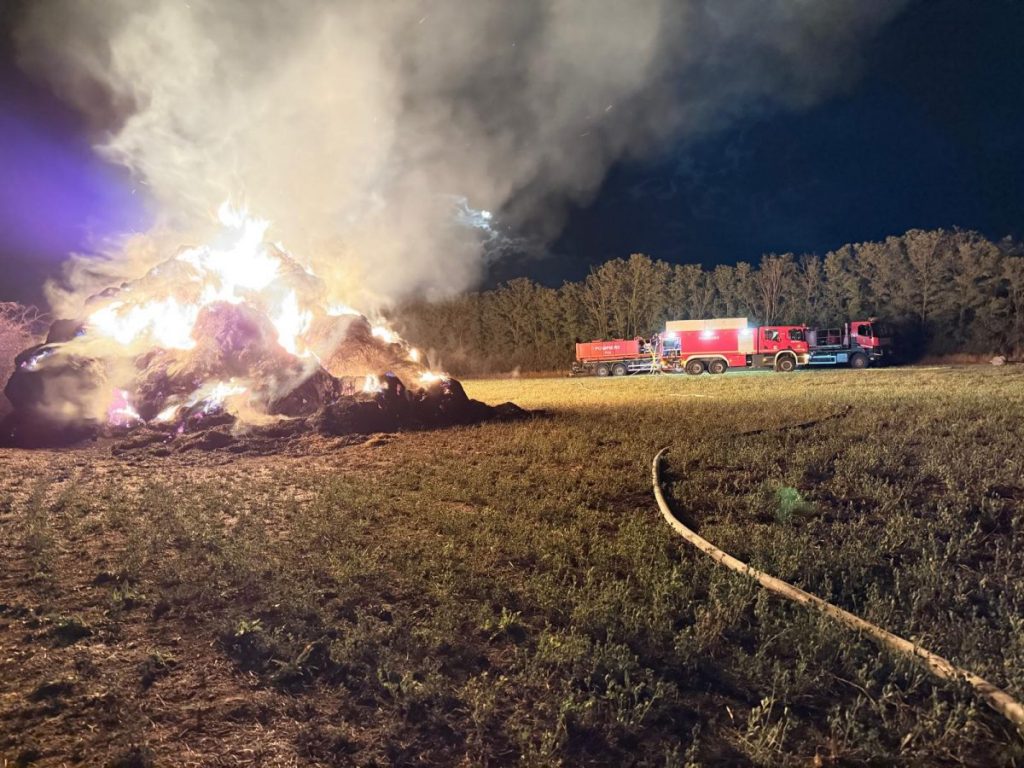În jurul orei 19.00, echipajele de pompieri ale Detașamentului 1 Oradea au intervenit cu trei autospeciale de lucru cu apă și spumă, pentru stingerea unui incendiu violent, care se manifesta la sute de baloți de fân, aflați pe un teren situat în localitatea Gepiu.