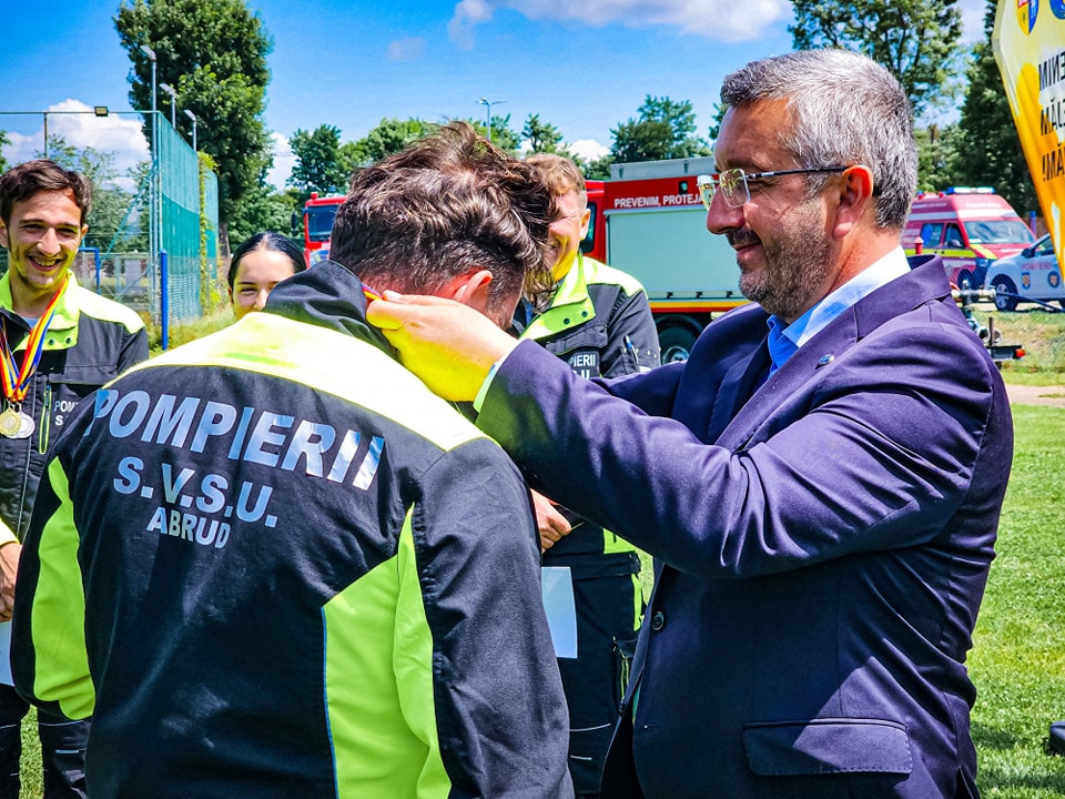 Aceștia au luptat astăzi pentru titlul de campioni ai Concursurilor Serviciilor Voluntare pentru Situații de Urgență. În cadrul celor trei probe ale concursului, cei înscriși s-au întrecut pentru a-și demonstra abilitățile practice, dând dovadă de curaj, echilibru și spirit de echipă. La acest eveniment a fost prezent și Prefectul județului Alba, domnul Nicolae Albu, care a premiat fruntașii acestei competiții.