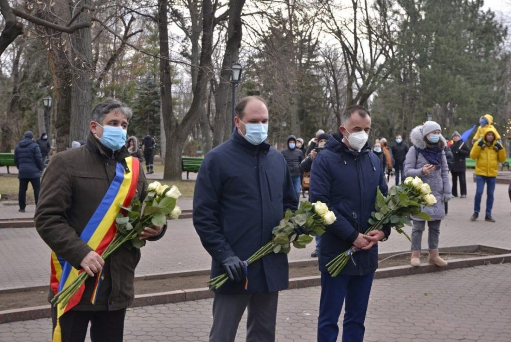 Edilul urbei albaiuliene, alături de primarului municipiului Chișinău, Ioan Ceban, și reprezentanți ai orașelor Piatra Neamț și Slănic Moldova, au depus flori la bustul poetului Mihai Eminescu.