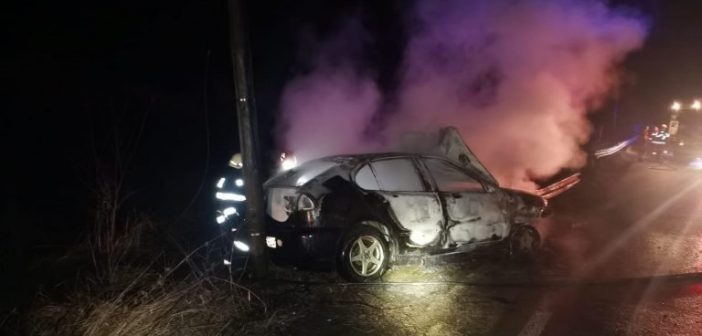 În urma accidentului, autoturismul a fost cuprins de flăcări, fiind distrus în totalitate.