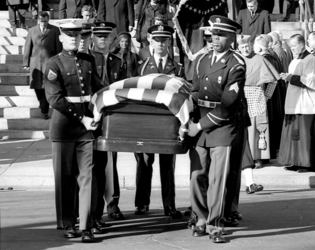La 25 noiembrie 1963 au avut funeraliile președintelui american, la cimitirul de la Arlington, în apropiere de Washington, nu înainte ca un sfert de milion de oameni să fi trecut prin faţa catafalcului pe care era depus trupul lui Kennedy, în clădirea Capitoliului. Doamna Kennedy ceruse ca edificiul să fie ţinut deschis toată noaptea pentru a permite accesul populaţiei.