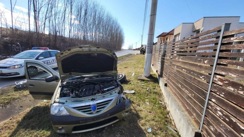 Un autoturism a părăsit partea carosabilă, acroșând o țeavă de distribuție a gazului metan.