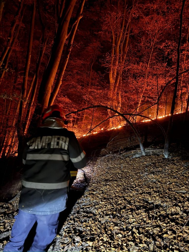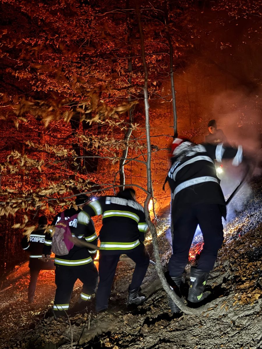 Forțele de intervenție au acționat întreaga noapte pentru stingerea incendiului de vegetație din comuna Mogoș, județul Alba. În prezent, incendiul este localizat în proporție de aproximativ 80%, însă echipele continuă să intervină în zonele greu accesibile, unde există focare active pe pante abrupte, cu risc de căderi de pietre și buturugi.