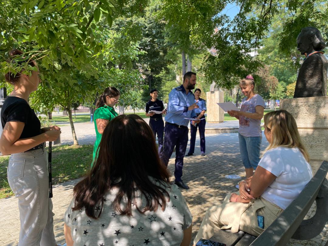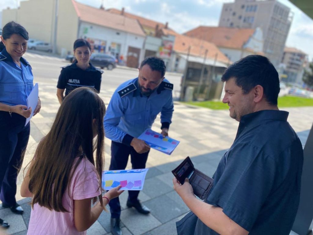 O astfel de acțiune a avut loc azi, 30 august, în mai multe zone comerciale și de agrement din municipiul Alba Iulia, context în care participanții la discuțiile cu polițiștii au primit orarele campaniei dar și alte materiale informativ – preventive.