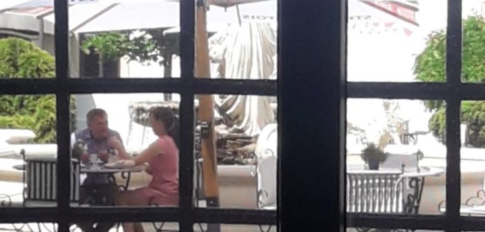 Viață de finanțator. Șeful Ocolului Silvic Alba Iulia surprins la ”negocieri” pe o terasă de fițe din oraș.