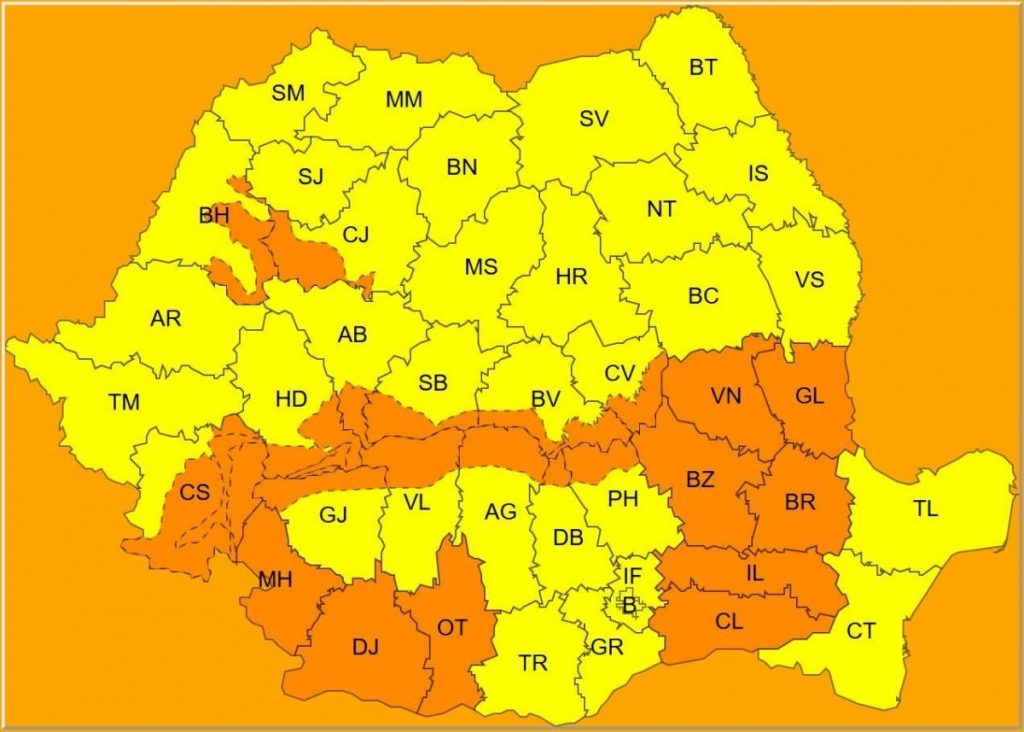 Zone afectate: județele Vrancea, Galați, Buzău, Brăila, Ialomița, Călărași