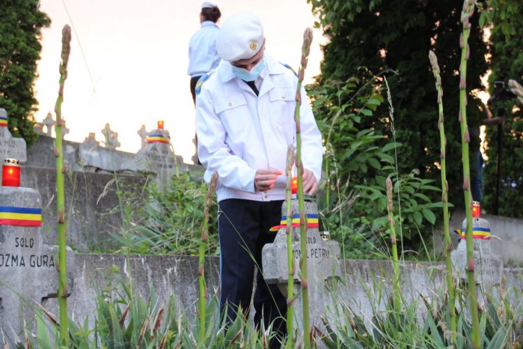 Concomitent, elevii militari și seminariști, alături de cei care au dorit, au aprins candele la mormintele eroilor.