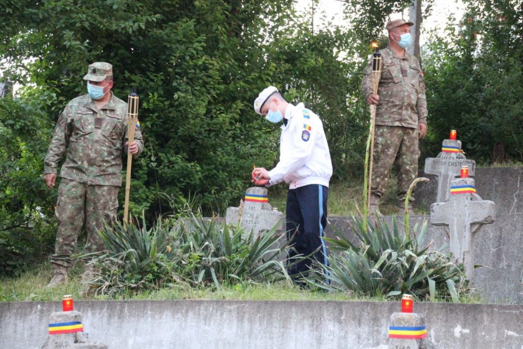 Militarii, poziționați pe partea laterală a Cimitirului, au aprins torțele în același timp. A urmat un moment de reculegere și alocuțiuni.